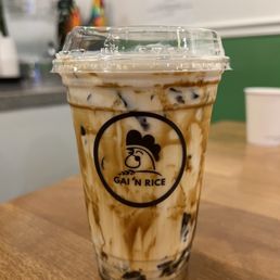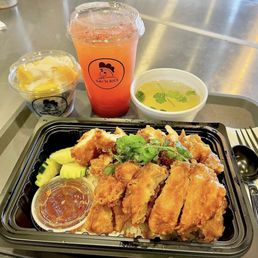 My friend and I ordered the Classic Gai N Rice and the Crispy Gai N Rice. These come with a separate bowl of chicken broth which was tasty. Thai tea was sweet and refreshing :) The classic chicken was pretty good. The sauce that comes with it went great together. I would like to note that the crispy chicken was a little bit on the oily side, so please if you are sensitive or not used to a lot of oil proceed with caution for that one. Otherwise the food they have is great and we would definitely come back to try out the other items on the menu. Service was good and the environment interior was nice. There's lots of parking space around. By the cashier there's a self serve water station with cups.